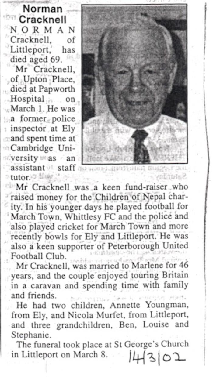 Obituary - Norman Leonard Cracknell (2002)